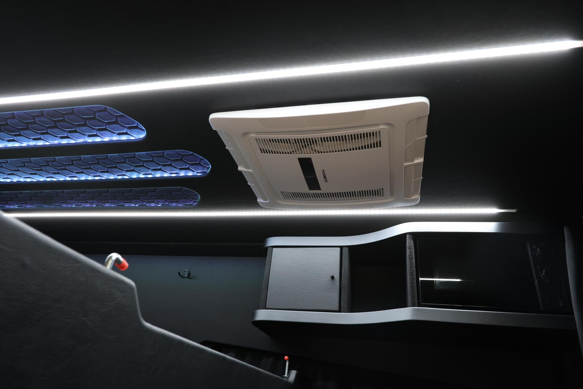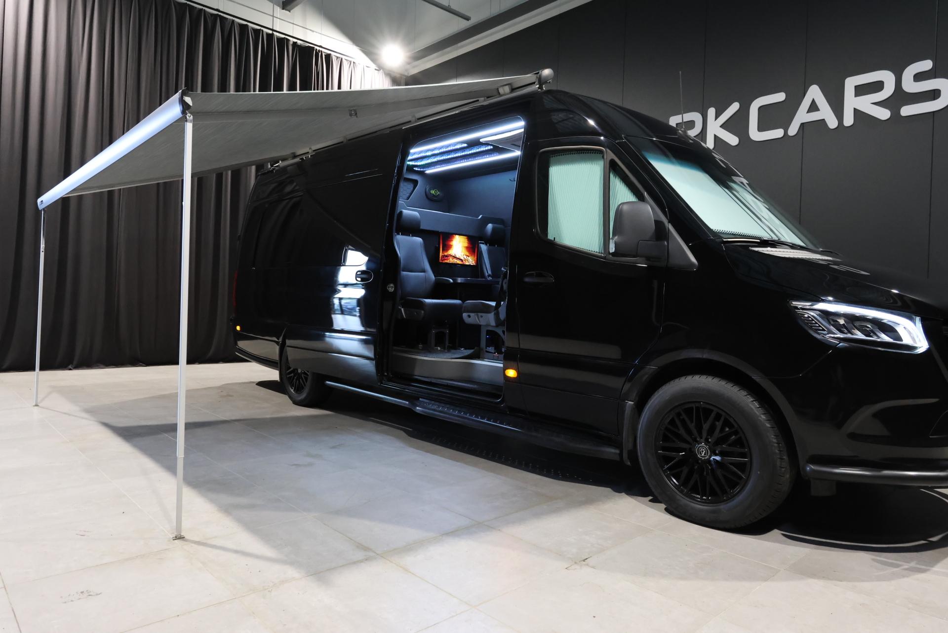 Mercedes-Benz Sprinter Premium-varustelupaketilla heti valmiina ajoon! Erillisen tavarankuljetustilan lisäksi autossa on laadukas retkeilyvarustus.